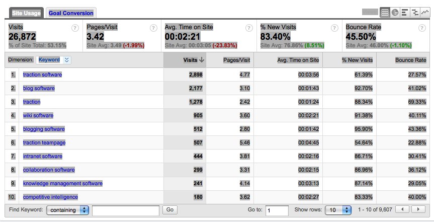 - The percentage of single-page visits (i.e. visits in which the person left your site from the entrance page).