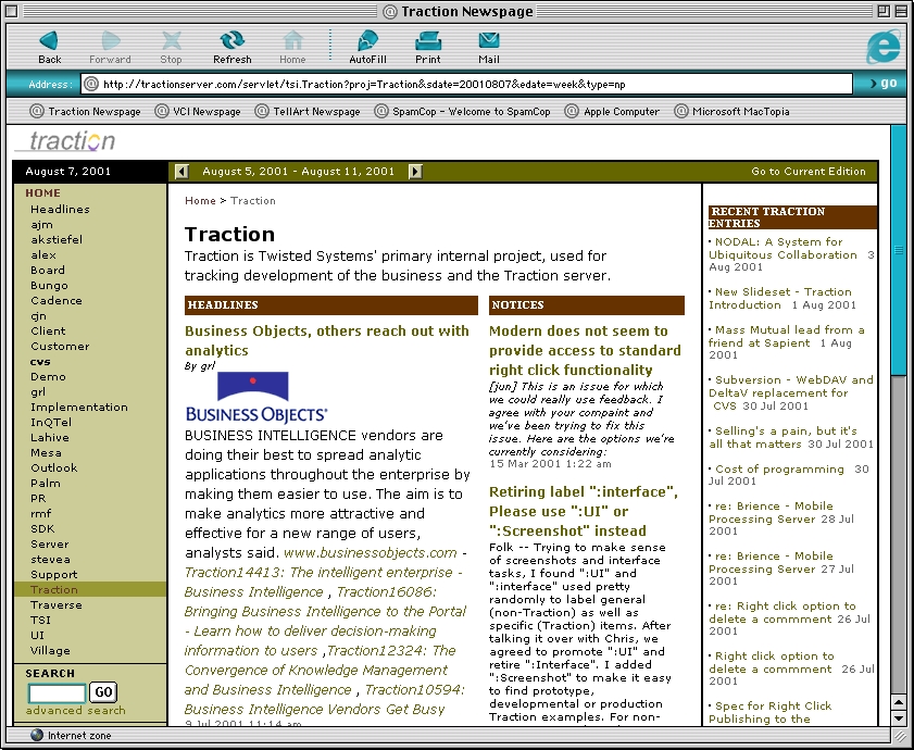 Folk -- Jeff asked me to send a few sample screen shots of the theme we propose to use for the Hancock demo. I suggest the 'News' theme (which is also the default you should see when you log into Traction).