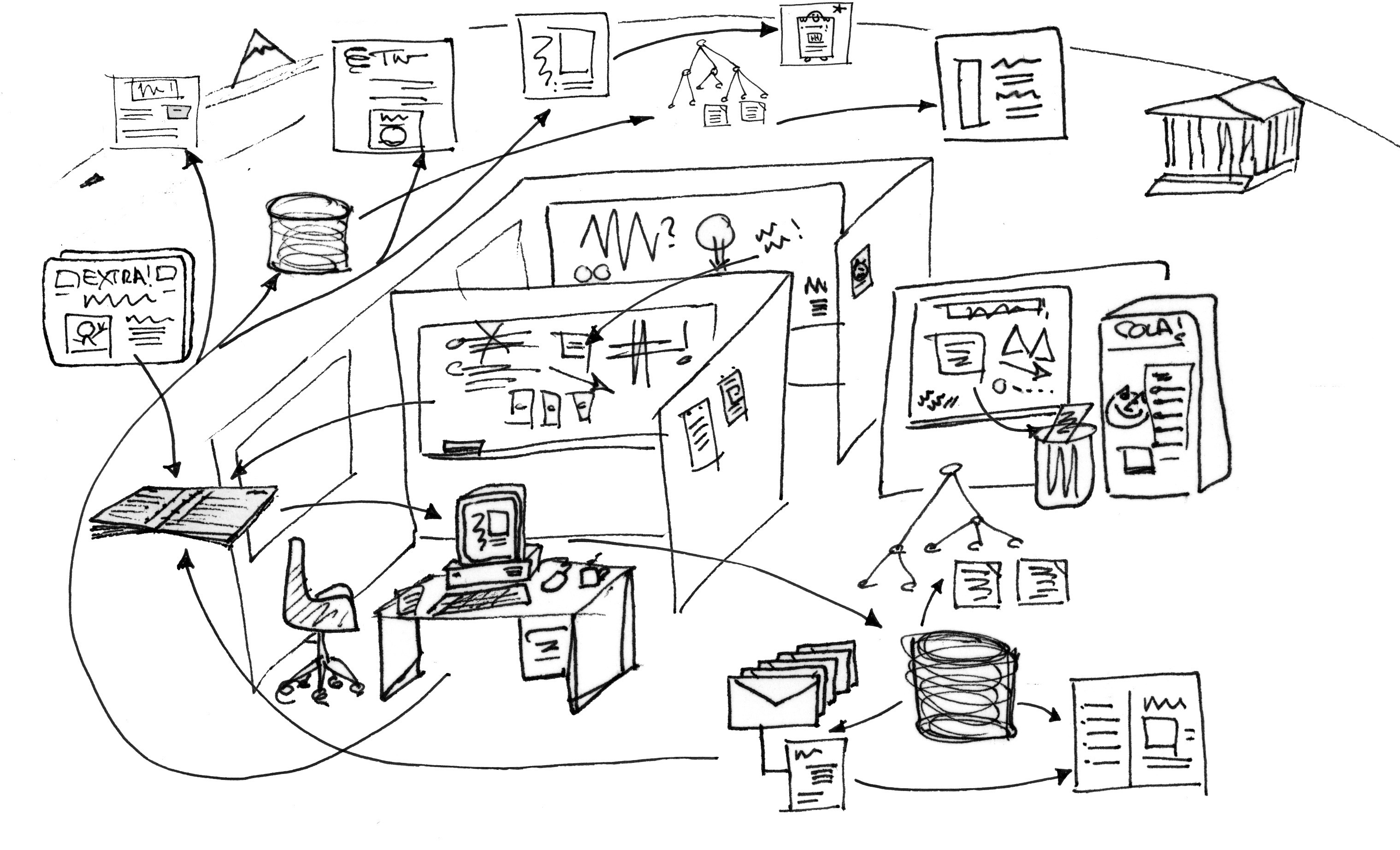 Intertwingled Work - Working and scaling like the Web. "... in the past, conversations could only be intertwingled across paper memos, faxes, written reports and email. Until the advent of the Web it wasn't possible to intertwingle conversations, networks, analysis and work in near-real time and global scale. Now that's trivial and essentially free with basic Web access."